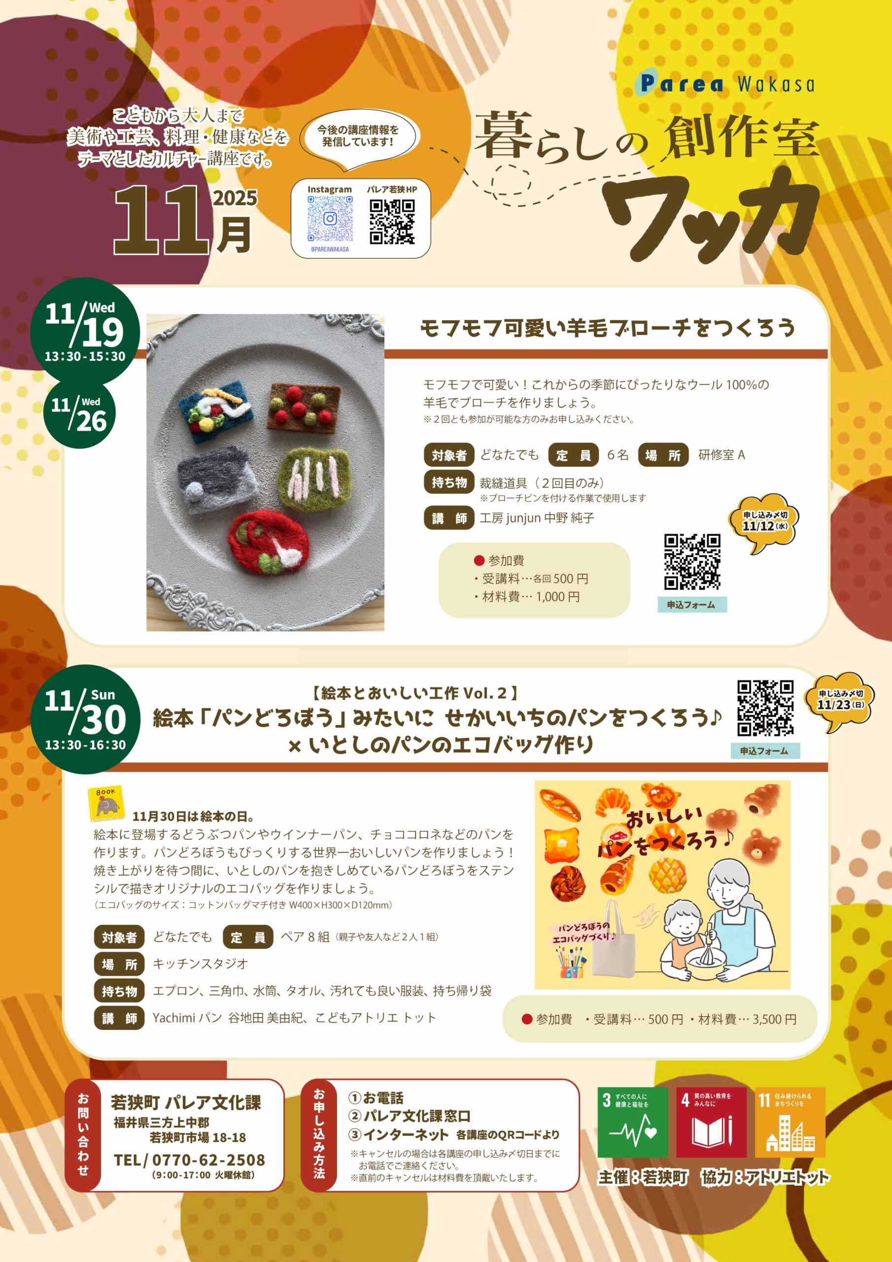 「暮らしの創作室 ワッカ2025年11月開催の教室のお知らせです!